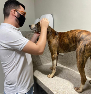 O cachorro foi levado até uma clínica veterinária no último domingo e recebeu todos os cuidados necessários