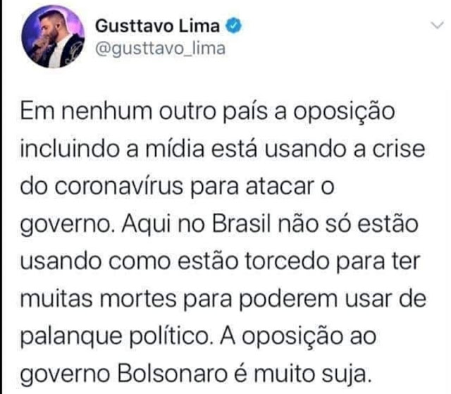 Após isso, vários fãs do cantor questionaram a atual situação do país em relação a Covid-19 e todas as atitudes do presidente, mediante a isso, o cantor afirmou: