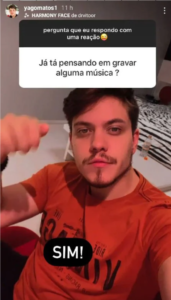 Através da ferramenta “Caixinha de perguntas” no aplicativo Instagram, um seguidor perguntou para Yago, se ele gravaria uma música e a resposta surpreendeu: “Sim”, disse ele. Todavia, o filho do Joelma contradiz todas as suas vontades. Ele ainda foi questionado a respeito de seu atual status de relacionamento e afirmou que estava solteiro.