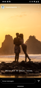 Após muita especulação e flagras dos dois juntinhos, a atriz usou os stories para divulgar uma foto, onde os pombinhos aparecem se beijando e sem dar muitos detalhes, Bruna escreveu: “Feliz dia do Beijo, Coisa”. Enzo re-compartilhou o post e retribuiu o carinho da nova namorada: “Feliz dia (do melhor) beijo”.