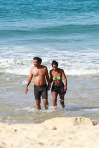 Maju e o maridão foram flagrados esta semana numa praia, no Rio de Janeiro, eles aproveitaram que as temperaturas voltaram ao normal, e resolveram se refrescar. Os dois com trajes de banho acabaram sendo fotografados, Maju usava a parte de cima do biquíni, e chamou atenção seu short comportado na praia.