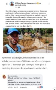 Para a surpresa do motoboy, a postagem viralizou, e todos se comoveram com a triste história de William, e ele não esperava que a publicação tivesse tanta repercussão.