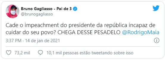 “Cadê o impeachment do presidente da república incapaz de cuidar do seu povo? Chega desse pesadelo”.