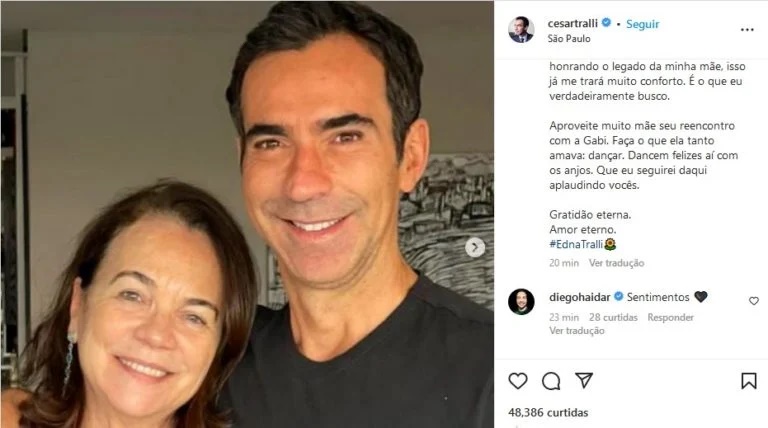 “Queria tanto mamãe sonhando ainda mais alto ao lado do amor dela, mais perto também da minha caçula de 3 anos. Da irmã, de 13 anos. Mas hoje sinto que mamãe está perto da filha dela, Gabi. Minha irmã especial, amor infinito. Enfim. Se eu puder continuar honrando o legado da minha mãe, isso já me trará muito conforto. É o que eu verdadeiramente busco”, finalizou o contratado da Globo.