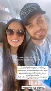 Dia mais esperado: o de finalmente voltar para casa”, foi a legenda usada por Anna Moraes, esposa do cantor, que postou uma foto junto dele. Ambos estavam embarcando para o Estado de Goiás, onde residem.