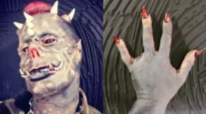 Tatuador “diabão” remove dedo e ganha presas em transformação visual