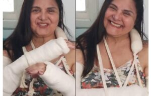 Acontece que ela acabou sofrendo um acidente doméstico, onde fraturou seus dois braços, e postou uma foto onde a mostrou com os dois braços imobilizados após ter recebido os cuidados médicos.