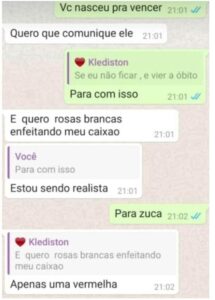Contudo, no mesmo dia da entubação o enfermeiro enviou uma mensagem de texto para a mãe, Elisângela da Silva, de 40 anos, o pedido que o jovem fez foi um adeus a família, ele pede para que em seu caixa tenha rosas brancas e só uma vermelha enfeitando.
