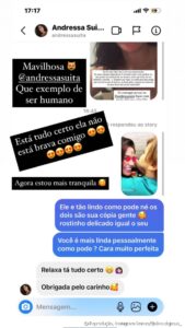 Fã mostra print de conversa com Andressa Suita e revela que os dois trocaram beijos e carinhos no barco