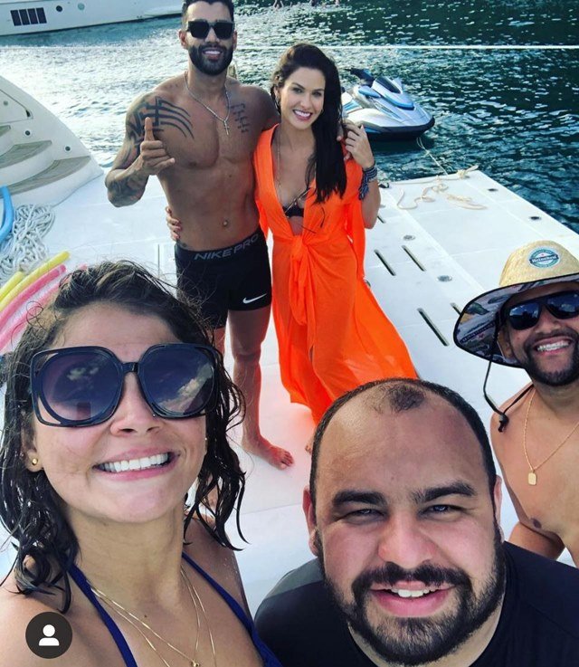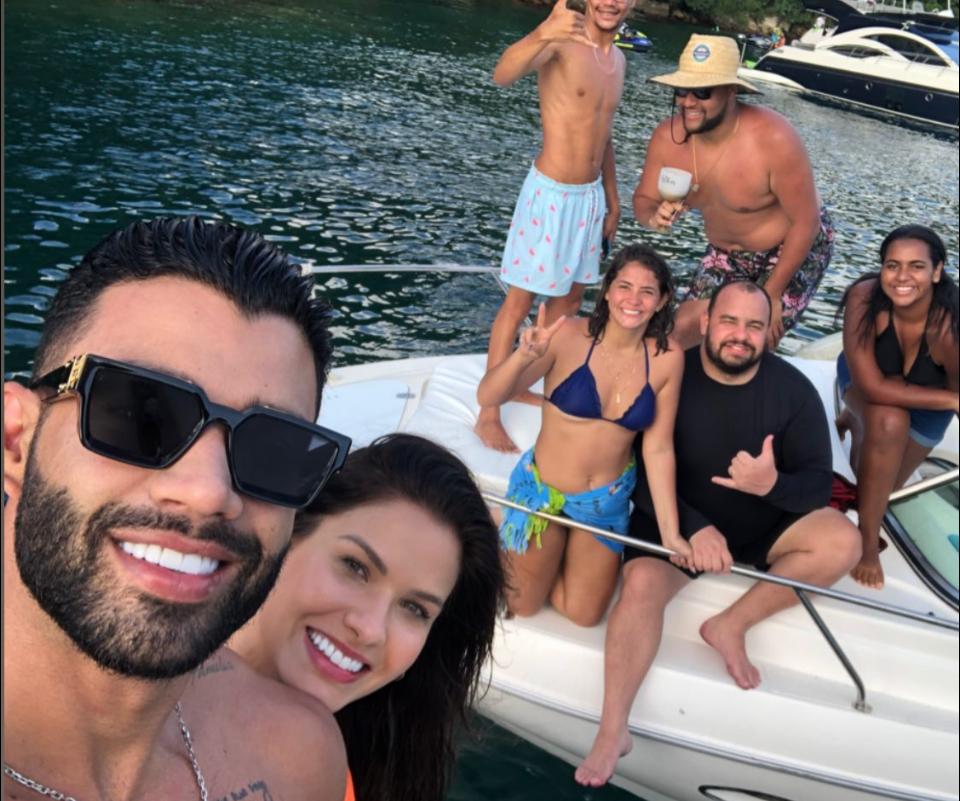 Gusttavo Lima e Andressa são flagrados juntos em lancha, em Angra dos Reis (RJ).