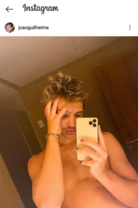 Ademais, João Guilherme vem de um estilo mais diferente dos irmãos, digamos que mais despojado, “cabelinho na régua, brinco na orelha” e desta vez, João apareceu mostrando o shape em frente ao espelho.