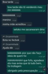 No entanto, quando alguém encaminha uma mensagem só com ‘Bom dia’, ele já respondia ” não estou vendendo o meu rim”.