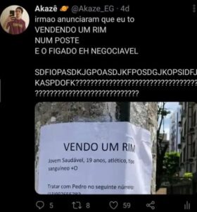 A princípio, por dia Pedro Zaccaria de, 19 anos, recebia dezenas de ligações e múltiplas mensagens “Como eu quero comprar seu rim! Você está vendendo um rim?” Pedro não entendia o porquê de tantas ligações.
