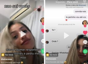 Portanto revelou que achou um máximo Neymar ter lhe respondido as mensagens e curtido as dela, foi algo que a marcou por ser um grande astro.