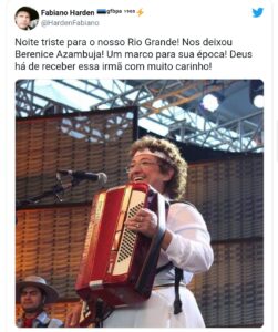“Uma das maiores artistas da nossa história. Que descanse em paz e toque muita gaita la no céu, Berenice Azambuja”.