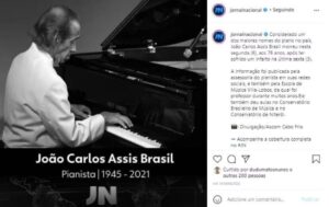 Infelizmente o perfil oficial do Instagram, do programa Jornalístico Jornal Nacional, acabou por noticiar a triste perda do renomado pianista João Carlos Assis Brasil, que acabou falecendo aos seus exatos 76 anos de idade.