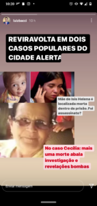 E então, nesta segunda-feira (22 de fevereiro), o apresentador Luiz Bacci, condutor do programa Cidade Alerta, na rede Record, que já vinha dentro do assunto e transmitiu com detalhes o caso, contou que se estava ruim, a situação agora piorou, Jennifer Natalia Pedro, mãe da Ísis foi encontrada morta na prisão onde estava detida.