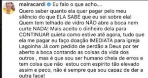“Quero saber quanto ela quer pagar pelo meu silêncio do que ela sabe que eu sei sobre ela! Quem tem telhado de vidro não abre a boca nem curte nada”