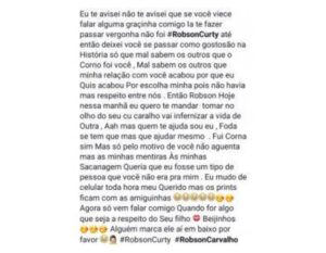 Entretanto, ao fazer a publicação para se certificar que o parceiro veria, ainda o marcou no post, e o pior, ela escolheu o dia do seu aniversário para fazer a vingança.