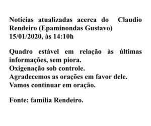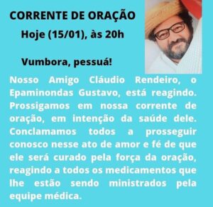 Todavia, “Deus é soberano e sua vontade deve ser aceita por todos nós, mesmo sabendo que a perda do Claudio é muito dolorosa e difícil de ser assimilada”, disse o irmão de Epaminondas.