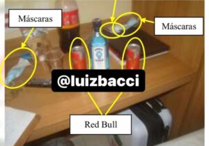 No quarto em que o artista estava, a policia encontrou muitos bebidas alcoolicas e não alcoolicas, chinelos masculino e feminino, mochilas e máscaras.