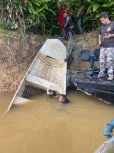 Quem levou a polícia ao local, onde a embarcação teria sido afundada propositalmente foi Jeferson da Silva Lima, conhecido pela alcunha de “Pelado da Dinha”, que confessou envolvimento no crime. Os agentes foram guiados até o Rio do Itacoaí, que fica nos arredores da comunidade de ’Cachoeira’.
