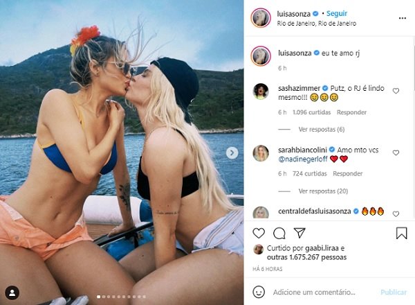 Sonza apareceu dando selinho em outra mulher numa lancha, durante uma ida ao Rio de Janeiro